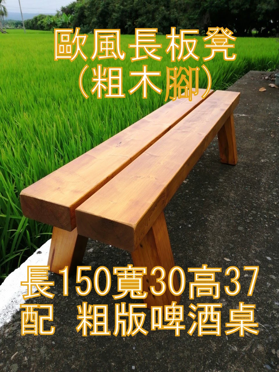 歐風長板凳 等候椅 (粗木腳) 150長
