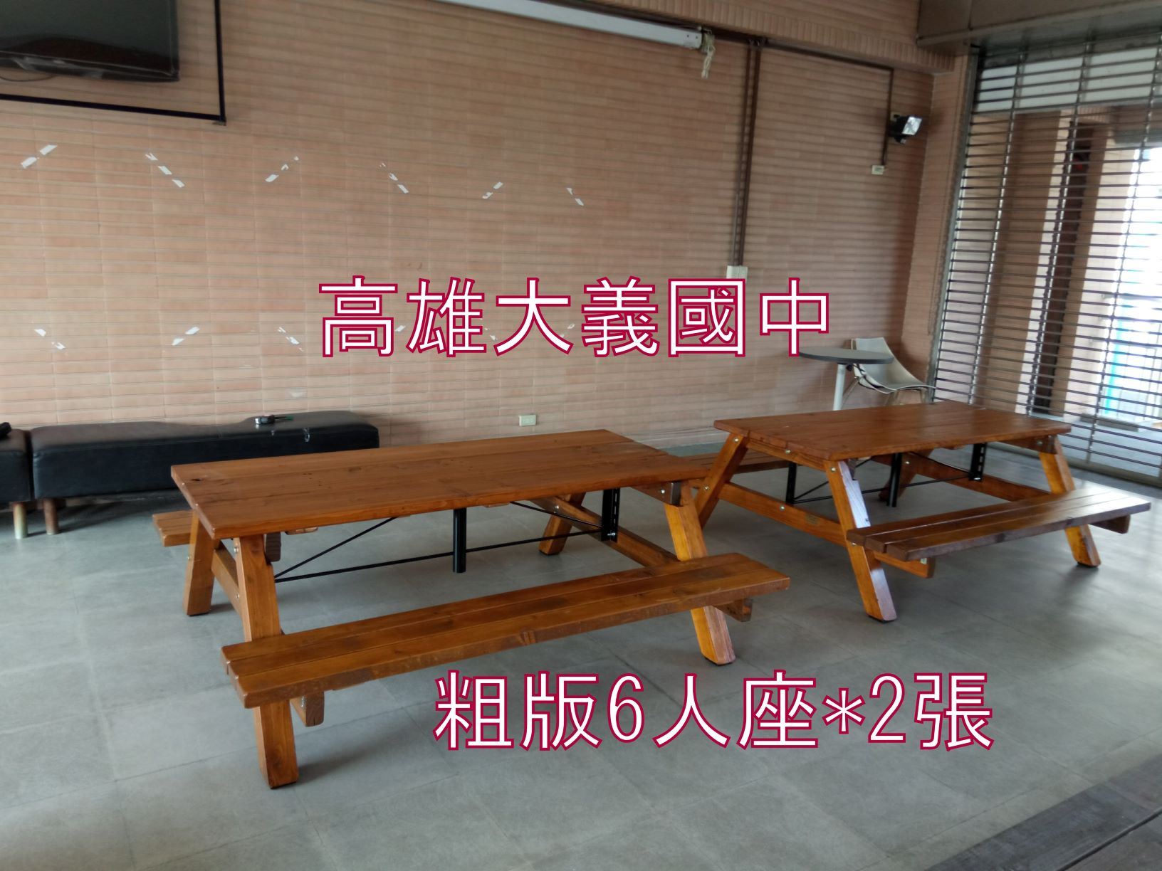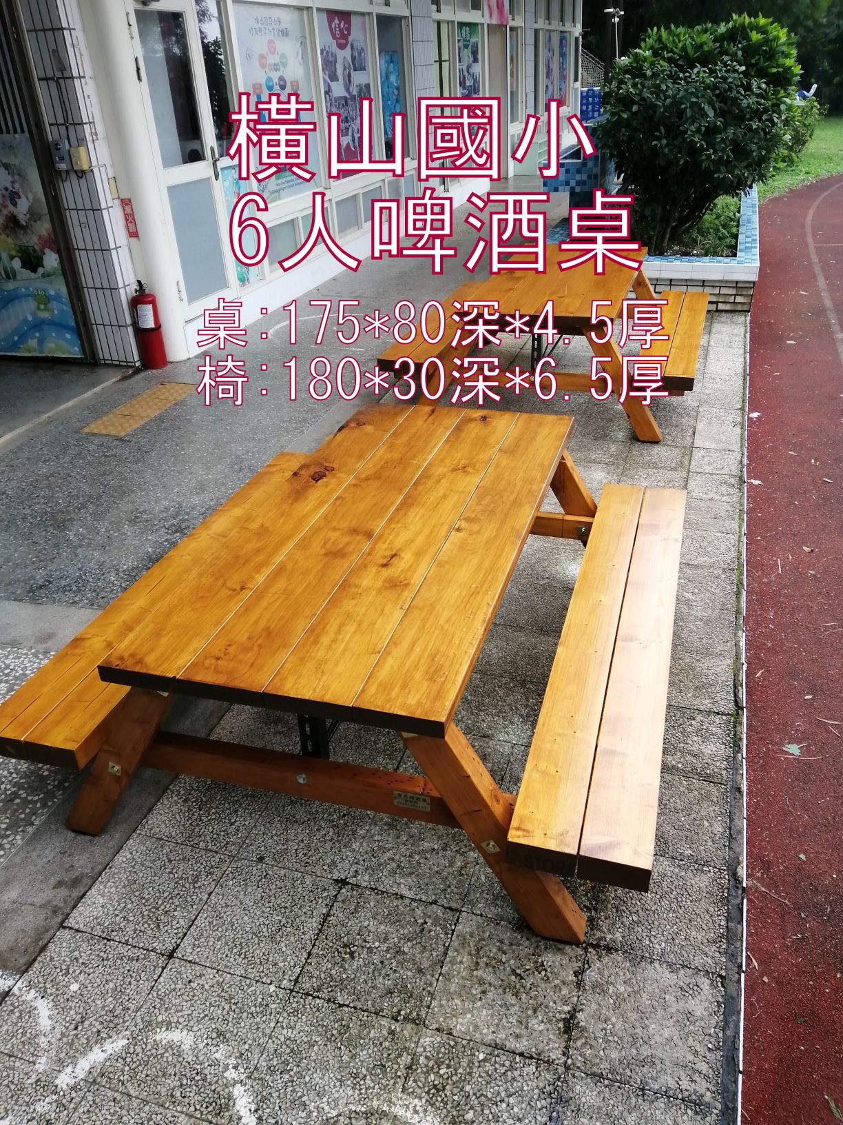 6尺 80 cm寬*180 4.5cm桌厚板 粗支柱: 9*9cm 30*6.5*180椅板 耐用10年 |