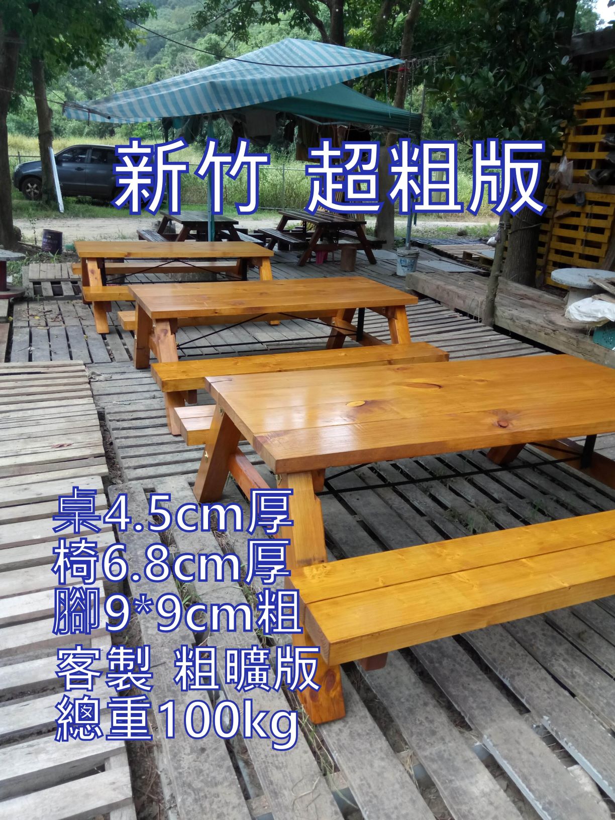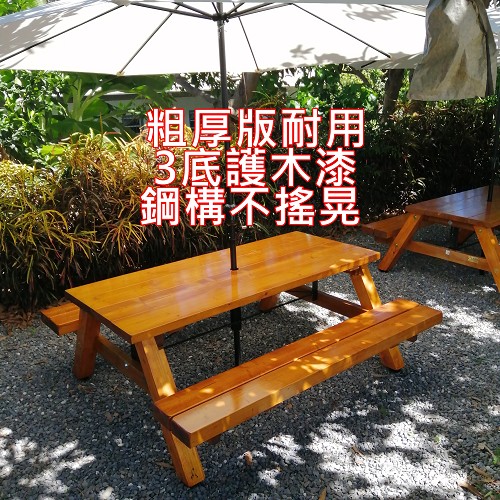 歡迎訂購 , 生產 製作2-5天 , 洪先生 改良薄片啤酒桌的缺點 可抵3台 薄板桌 ; 適合 粗曠 野餐露營區 , 民宿業 , 咖啡園 , 庭園藝 , 泡茶桌 採用 黃松木 (非杉木) , 密度高 用粗樑 不省料 , 粗壯才是王道 , 產完為止 |