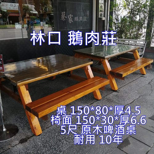 5尺 80cm寬*150 4.5cm桌厚板 粗支柱: 9*9cm 30*6.5*150椅板 耐用10年 |